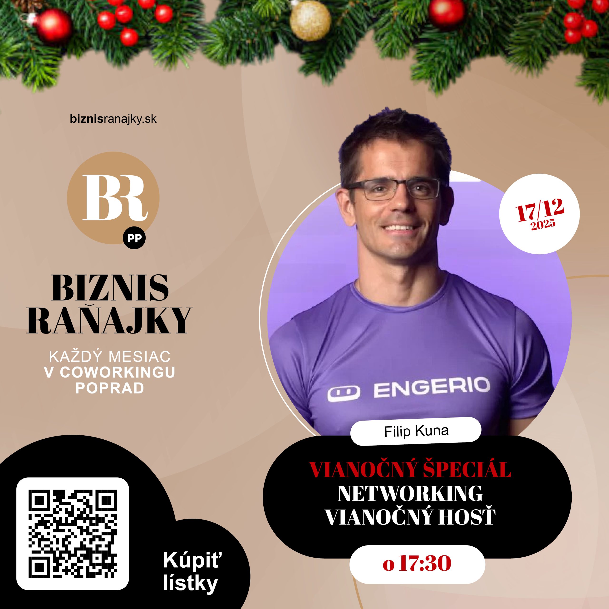 Biznis raňajkový rok sme sa rozhodli zakončiť biznis raňajkovým večierkom BRP Vianoce Edition. Čaká nás predvianočný riadený networking, hosť večera, vianočný punč a samozrejme predvianočná pohoda.